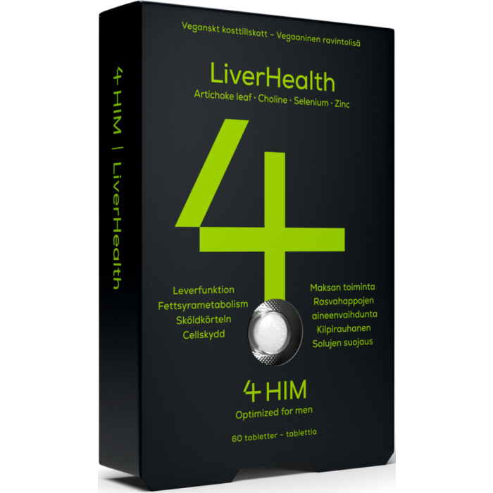 Ravintoarvot (määrä per vuorokausiannos): Artisokan lehtiuute 450 mg**; Koliini 90 mg**; Magnesium 150 mg (40*); C-vitamiini 80 mg (100*); E-vitamiini (a-TE) 12 mg (100*); Sinkki 10 mg (100*); B6-vitamiini 1 mg (71*); B2-vitamiini 1 mg (71*); Seleeni 20 μg (36*); D3-vitamiini 10 μg (200*). *% Päivittäisen saannin vertailuarvosta; **Päivittäisen saannin viitearvoa ei ole määritetty