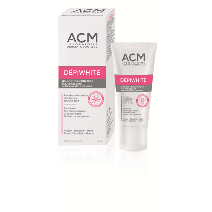 ACM Depiwhite Mask valkaiseva kuorintanaamio on suunniteltu häivyttämään ja poistamaan ruskeita pilkkuja ja tasaamaan ihonväriä. Sisältää antipollonia, joka imee melaniinia orvaskeden ylemmästä kerroksesta. Tämä on nopeasti vaikuttava ainesosa, jonka ensimmäiset valkaisutulokset ovat nähtävissä jo 15 käyttöpäivän jälkeen. Sisältää myös kojic-happoa ja C-vitamiinia, jotka hidastavat melaniinin tuotantoa. Niillä on myös valkaiseva vaikutus.