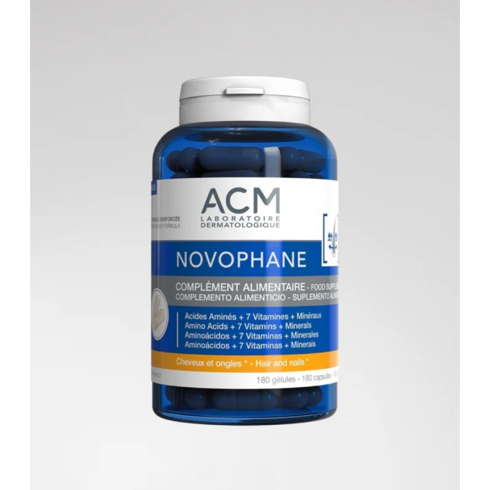 Kauniit ja eläväiset hiukset ja kynnet ACM Novophane kapseleiden avulla. Tukee hiusten kasvua ja edistää kynsien pysymistä normaaleina. Ravitsee hiusjuuria. Sisältää hiusten ja kynsien terveydelle tärkeitä ainesosia, kuten biotiinia, vitamiineja, aminohappoja, hivenaineita ja peltokorteuutetta.