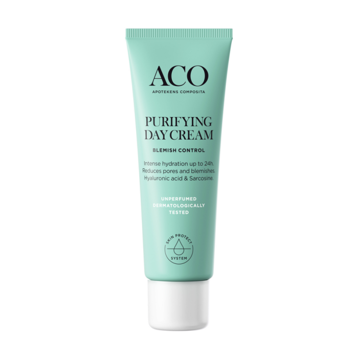 ACO Purifying Day Cream on nopeasti imeytyvä päivävoide, joka rauhoittaa ihoa ja auttaa vähentämään ärsytystä, epäpuhtauksia ja liiallista talituotantoa.