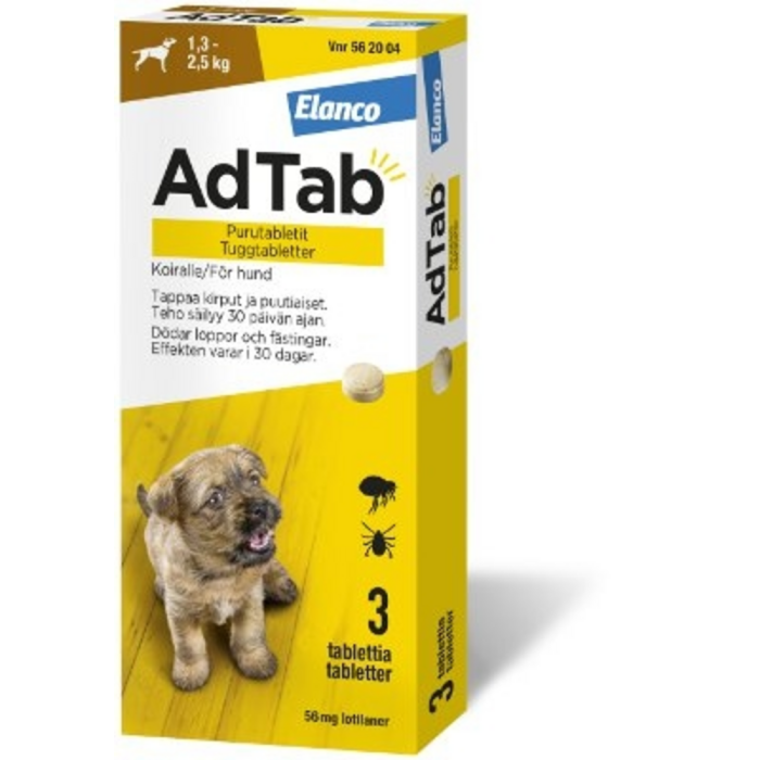 ADTAB 56 mg 3 fol purutabletti koiralle (1,3–2,5 kg)