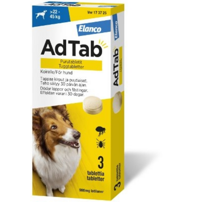 ADTAB 900 mg 3 fol purutabletti koiralle (> 22–45 kg)