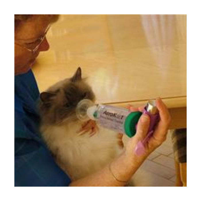 AeroKat Feline on inhalaatiomaski astmaa sairastavien kissojen lääkkeelliseen hoitoon, kroonisen bronkiitin ja allergisen nuhan hoitoon. S ja M koot.