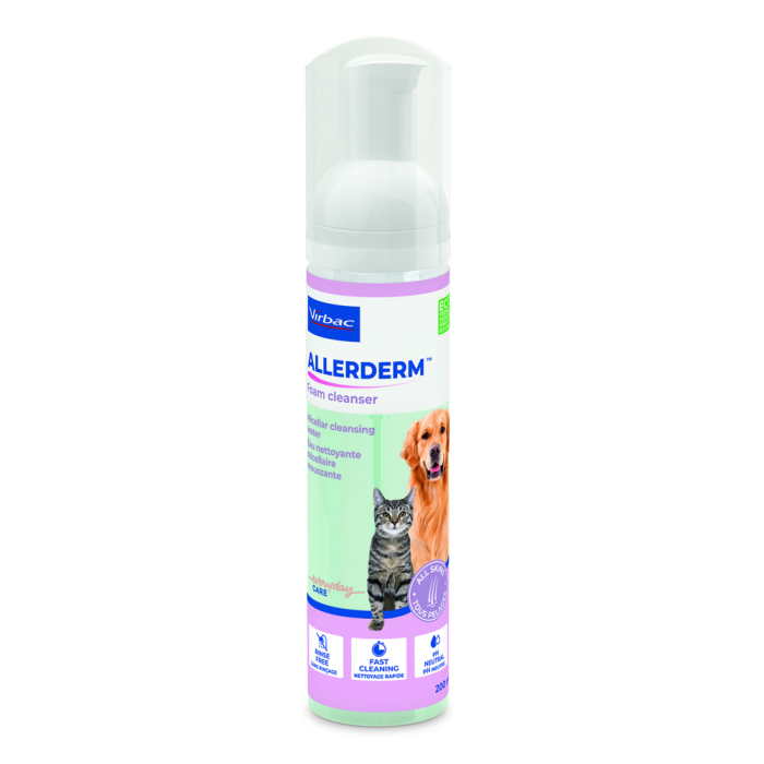 Puhdistava Allerderm Foam on helppo levittää hellavaraisesti ja nopeasti pesujen välillä. Valmistettu misellivesiliuoksesta, joka sopii kaikille ihotyypeille, myös herkälle iholle.
