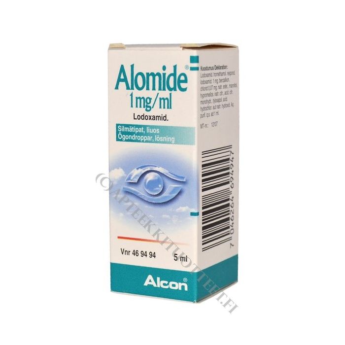 Alomide on tarkoitettu silmän allergisen sidekalvotulehduksen hoitoon. Sen vaikuttava aine lodoksamidi lievittää allergista tulehdusta, joka ei ole bakteerin aiheuttama (allerginen konjunktiviitti). Allergisen konjunktiviitin oireita ovat mm. silmän punoitus, turvotus tai kutina. Alomidea ei suositella alle 4-vuotiaille lapsille.