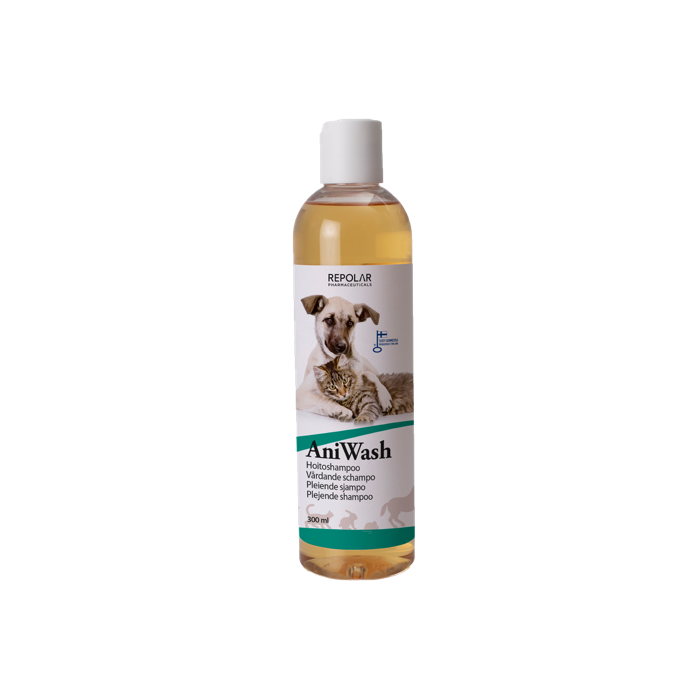 Antiseptinen AniWash Hoitoshampoo rauhoittaa eläinten iho-ongelmia mm. hilseilyä, punoitusta, kutinaa ja ärsytystä. Hellävarainen AniWash hoitoshampoo ei kirvele rupisella, märkivällä tai rikkinäiselläkään iholla. Shampoo pesee eläimen tehokkaasti, kuitenkaan kuivattamatta ihoa. AniWash tasapainottaa ihon kosteustasapainoa, aikaansaaden kauniin ja kiiltävän karvan. Hoitoshampoo sopii loistavasti myös eläinten peruspesuihin.