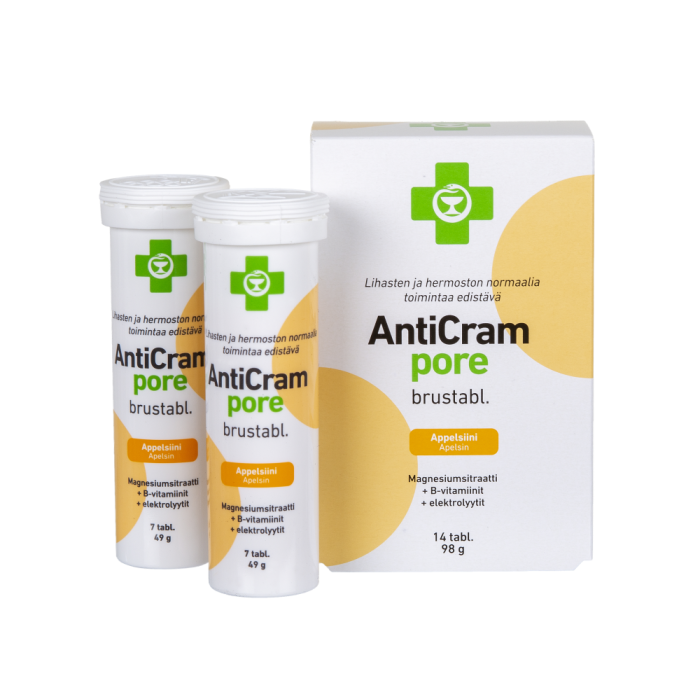 Raikkaan appelsiininmakuinen poretabletti. Sisältää magnesiumsitraattia, B-vitamiineja ja elektrolyyttejä eli suoloja. Lihasten ja hermoston normaalin toiminnan tueksi. Sopii myös vegaaneille.