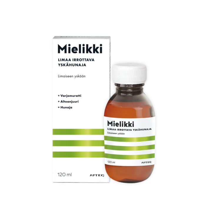Mielikki yskähunaja on ensimmäinen turvallinen ja tehokas yskähunaja limaiseen yskään. Mielikki sisältää hunajaa, sekä tutkittua luontaista mukolyyttiä varjomuratti- ja timjamiuutetta. Aikuisille ja yli 1-vuotiaille lapsille.