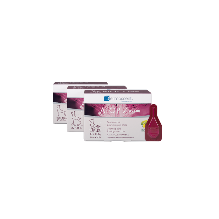 Se on erityisesti atoopikoille ja allergikoille suunniteltu spot-on valmiste, joka sisältää ainutlaatuisen yhdistelmän luonnollisia vaikuttavia aineita, jotka vahvistavat ihoestettä, lievittävät kutinaa ja ärsytystä sekä kosteuttavat ihoa. Kroonisissa iho-ongelmissa, kuten atopiassa, ihon keramidipitoisuus laskee ja filaggriinin, ihoesteen tärkeimmän proteiinin, synteesi vähenee. Tämän seurauksena ihon suojamuuri eli ihoeste vaurioituu, kosteuden haihtuminen iholta lisääntyy ja iho kuivuu. Atop 7 spot-on stimuloi filaggriinin ja keramidien synteesiä, jolloin ihoeste vahvistuu ja lisäksi se kosteutta ihoa tehokkaasti.