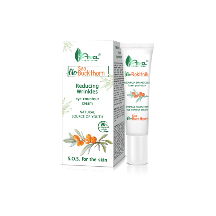 AVA Bio Tyrni Silmänympärysvoide 98% natural on antioksidanttinen ja ravitseva silmänympärysvoide, joka sisältää tyrniuutetta. Kosteuttaa ja tasoittaa herkkää silmänympärysihoa sekä auttaa vähentämään pieniä juonteita, turvotusta ja tummia silmänalusia. Sopii päivittäiseen käyttöön aamuin illoin.