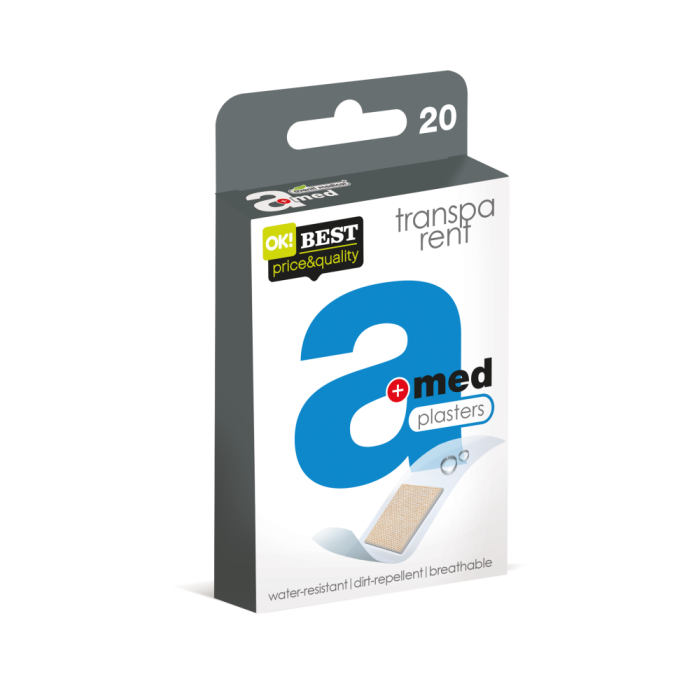 Edulliset vettä ja likaa hylkivät läpinäkyvät Avanti Medicalin A-med laastarit.