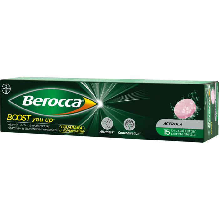 Berocca Boost on vitamiini- ja kivennäisainevalmiste, joka sisältää keskittymiskykyä tehostavaa ja piristävää kofeiinia sekä guaranaa.