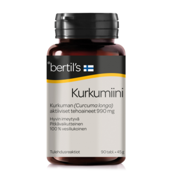 Bertil´s Kurkumiini sisältää kurkumasta valmistettua kurkumiiniuutetta (Cavacurmin®), joka imeytyy tehokkaasti.
