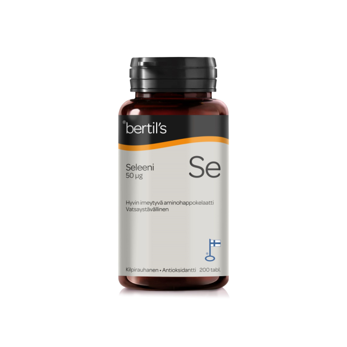 Kotimaiset bertil’s Seleeni -tabletit sisältävät aminohappokelatoitua seleeniä.