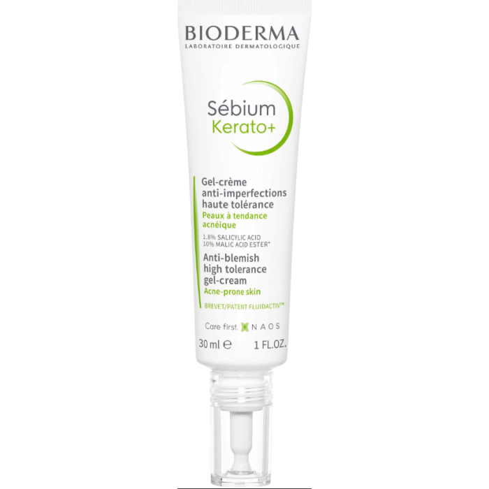 Tasapainottava geelivoide rasvaiselle ja akneiholle. Bioderma Sébium Kerato+ Gel Cream 30 ml geelivoide on suunniteltu erityisesti rasvaisen ja akneen taipuvaisen ihon tarpeisiin. Talineritystä tasapainottava hoito ehkäisee finnejä ja mustapäitä sekä vähentää tulehdusherkkyyttä. Kevyt geelivoide kirkastaa ja tasoittaa ihoa sekä kosteuttaa jopa 8 tunnin ajan ilman ihoa kuivattavaa vaikutusta. Antibakteerinen koostumus sisältää salisyylihappoa ja omenahappoesteriä, jotka auttavat tekemään talista juoksevampaa ja siten vähemmän ihohuokosia tukkivaa. Sen ansiosta finnejä ja mustapäitä syntyy vähemmän. Vegaaninen.