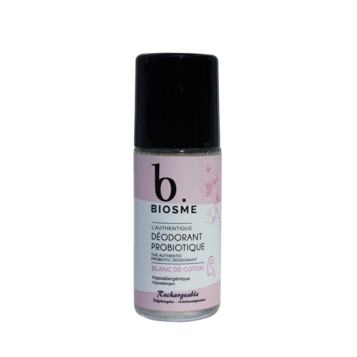 Probioottinen hypoallergeeninen deodorantti, joka on uudelleentäytettävä. Tuoksu: Blanc de cotton - makea manteli Ei sisällä hormonitoimintaa häiritseviä aineita, eteerisiä öljyjä, alkoholia, magnesiumoksidia tai natriumbikarbonaattia. Deodorantti on patentoitu tehokkuutensa ja ainutlaatuisen koostumuksensa vuoksi. Suunniteltu säätelemään hienhajua luonnollisesti ja tehokkaasti. Sopii herkälle iholle. - Koostumus on huolellisesti kehitetty ihoa ja ympäristöä kunnioittavista ainesosista. - Ainesosat tulevat luonnollisista ja orgaanisista lähteistä tinkimättömän tehokkuuden takaamiseksi. - Probiootit: Hyödylliset mikro-organismit auttavat tasapainottamaan ihon bakteerikantaa ja ehkäisevät epämiellyttäviä hajuja. - Vesipohja: Veden käyttö pohjana tekee tuotteesta kevyen ja ärsyttämättömän, ihanteellisen herkälle iholle.