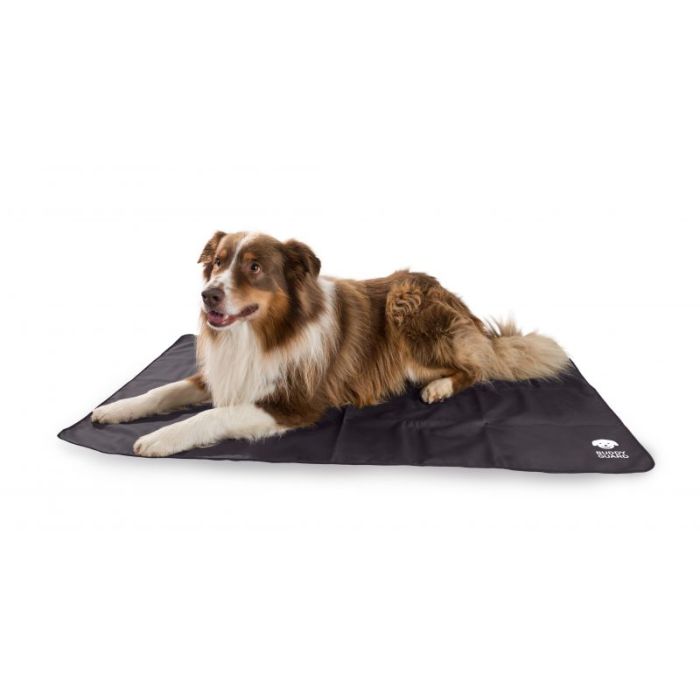 Helposti mukana kulkeva Buddyguard-makuualusta koirille. Hyönteisiltä suojattu peite on vaaraton ihmisille ja koirille, mutta tappava mm. punkeille ja hyttysille. Vaikuttava biosiditehoaine permetriini on lujasti peitteessä eikä irtoa siitä.
