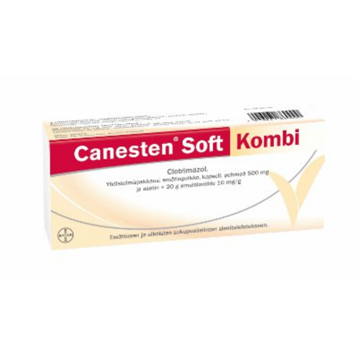 Canesten Soft Kombi -valmistetta käytetään (hiiva)sienen aiheuttamien emätintulehdusten ja ulkoisten sukupuolielinten tulehdusten hoitoon. Valmisteen vaikuttava aine on klotrimatsoli. Hiivasienitulehduksen oireita ovat mm. kutina, polttava tunne, valkovuoto, punoitus, turvotus ja arkuus. Yleensä tulehdus on sekä emättimessä että ulkoisissa sukupuolielimissä, jolloin käytetään emätinpuikon lisäksi emulsiovoidetta.