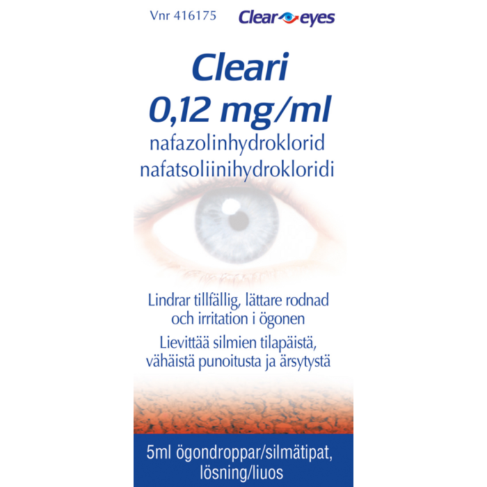 Cleari silmätippaliuos on tarkoitettu aikuisille ja vähintään 12-vuotiaille lapsille tilapäisesti lievittämään silmien vähäistä punoitusta ja ärsytystä. Valmisteen vaikuttava aine nafatsoliinihydrokloridi, joka kuuluu paikallisesti verisuonia supistavien lääkeaineiden ryhmään.