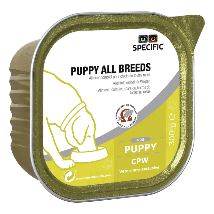 -SPECIFIC CPW Puppy All Breeds on erityisen sopiva ruokavalio pienten ja keskikokoisten rotujen pennuille vieroituksesta (n. 5-6 viikon iästä) aina siihen asti, kunnes pentu on saavuttanut 80% aikuispainostaan. Tämän jälkeen pentu voidaan siirtää vähitellen SPECIFIC CXD Adult Small Breed/CXD Adult Medium Breed/CXW Adult All Breeds -ruokavalioon.