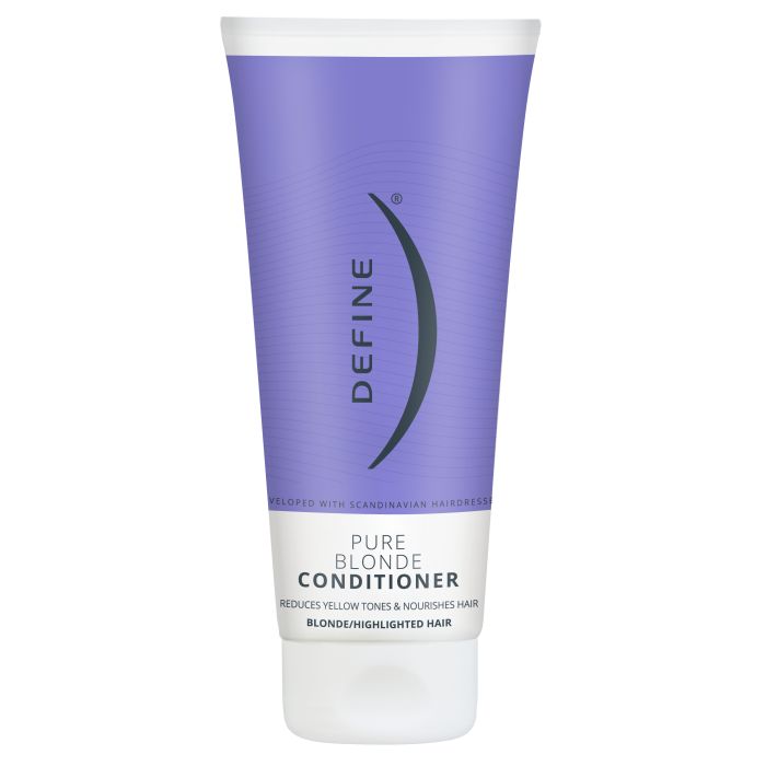 Define Pure Blonde hopeahoitoaineen violetti väripigmentti nautralisoi keltaisia sävyjä, antaen hiuksille raikkaan ja puhtaan vaalean sävyn. Sopii vaaleille, raidoitetuille ja harmaille hiuksille. Sisältää hiuksia hoitavia ainesosia ja sopii päivittäiseen käyttöön. Vegaaninen.