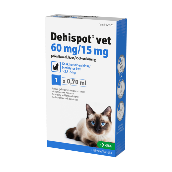 DEHISPOT VET 60/15 mg 0,7 ml paikallisvaleluliuos keskikokoiselle kissalle >2,5-