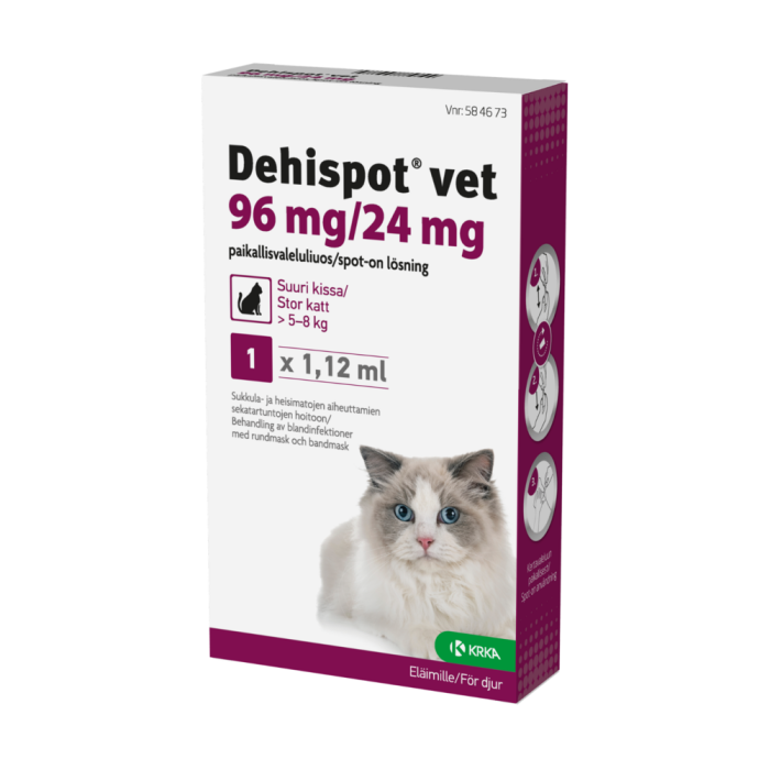 DEHISPOT VET 96/24 mg 1,12 ml paikallisvaleluliuos suurelle kissalle >5-8 kg