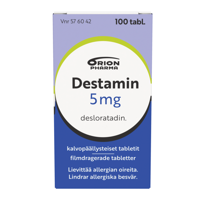 Destamin 5 mg tabletti on allergiseen nuhaan liittyviin nenä- ja silmäoireiden sekä nokkosihottuman hoitoon tarkoitettu itsehoitolääke.