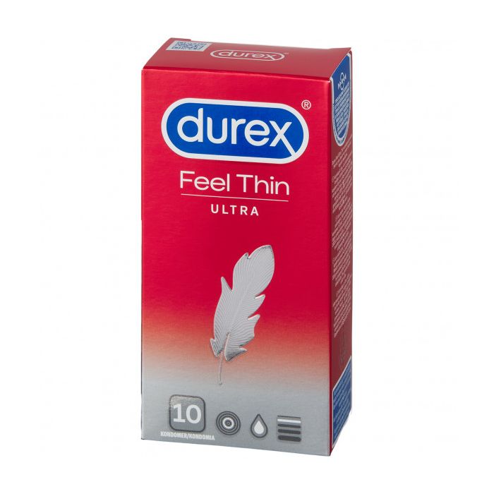 Durex Feel Ultra Thin kondomit ovat erityisen ohuita juuri oikeista kohdista, parantaa herkkyyttä. Suoraseinäinen, päässä säiliö. Läpinäkyvä liukastettu luonnonkumikondomi.