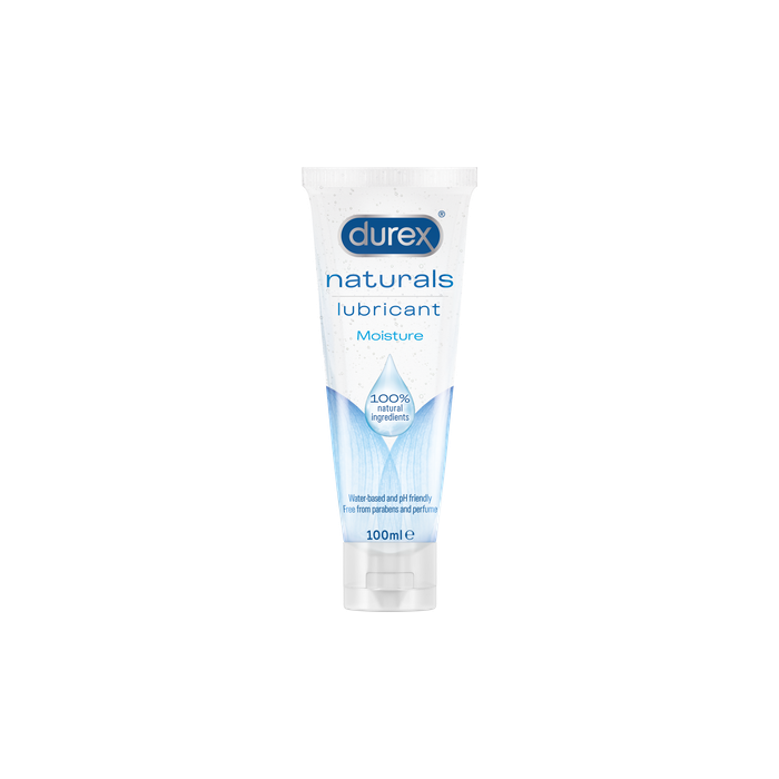 Durex Naturals Lubricant Moisture -geeli on valmistettu 100-prosenttisesti luonnollisista ainesosista ja se sisältää luonnollista hyaluronihappoa, joka tunnetaan kosteutta sitovista ominaisuuksistaan.