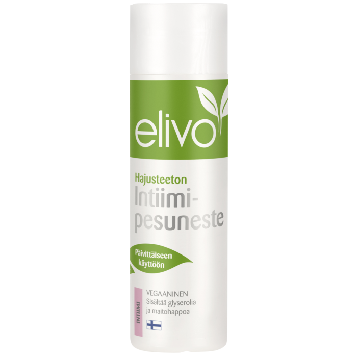 Hajusteeton ja väriaineeton Elivo Intiimipesuneste pesee hellävaraisesti ihoa ärsyttämättä. Tuote sisältää ihoystävällistä maitohappoa, joka ylläpitää intiimialueen luonnollista pH-tasapainoa.