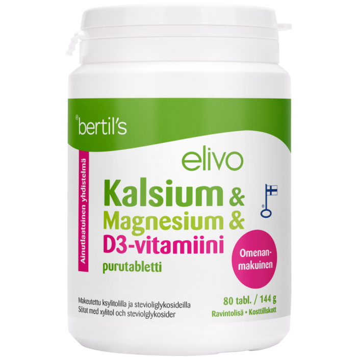 Elivo Kalsium & Magnesium & D3-vitamiini -yhdistelmävalmiste sisältää luustolle välttämättömät rakennusaineet. Kalsium, magnesium ja D3-vitamiini edistävät luuston pysymistä normaalina.