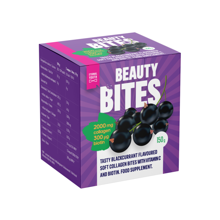 Glukoosisiirappi, sokeri, vesi, VERISOL® hydrolysoituja kollageenipeptidejä (naudasta), gelatiini, omenapyree, säilöntäaine (sitruunahappo, kaliumsorbaatti), C-vitamiini (askorbiinihappo), luontainen aromi (mustaherukka), luontainen väriaine (mustan porkkanan mehutiiviste), E-vitamiini (D-alfatokoferyyliasetaatti), biotiini.