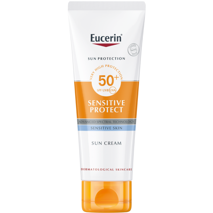 Hajusteeton ja kevyen kermainen Eucerin Sun Face Sensitive Protect Cream SPF 50+ on kliinisesti ja dermatologisesti todistettu sopivaksi herkälle ja jopa atooppiselle iholle.