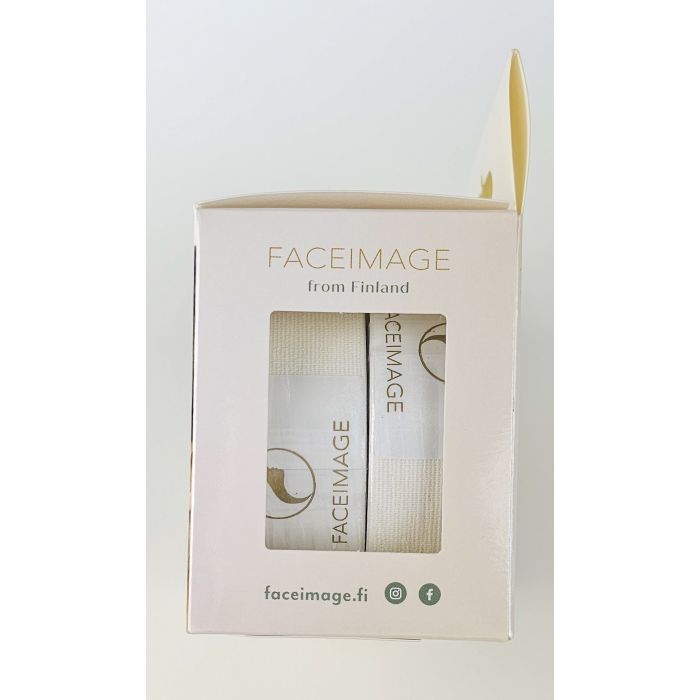 Faceimagen kasvoteippisarja sisältää sopivaa teippiä herkälle ja normaalille iholle, ja näistä molemmista löytyy 2 eri leveyttä. Jokainen pakkaus sisältää mini-oppaan (FIN/ENG), jossa on neljä helppoa teippausta.