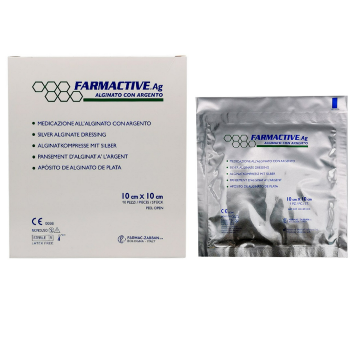 Antimikrobinen FARMACTIVE® Ag -hopea-alginaattihaavasidos sisältää alginaattia, mistä voi olla apua pinnallisten haavojen vähäisen verenvuodon hallinnassa. Tätä tuotetta voidaan myös käyttää kompressiosidosten alla. Antimikrobisella FARMACTIVE® Ag -hopea-alginaattihaavasidoksella voidaan terveydenhuollon ammattilaisen valvonnassa hoitaa tulehtuneita haavoja tai haavoja, joiden infektioriski on kohonnut.