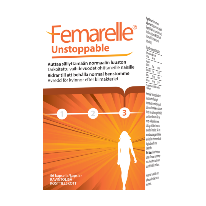 Femarelle® Unstoppable on tarkoitettu postmenopausaalisille eli vaihdevuodet ohittaneille naisille. Femarelle® Unstoppable -valmisteen pääainesosa on patentoitu DT56a (uutettu fermentoidusta soijasta). Femarelle® Unstoppable sisältää kalsiumia sekä D-vitamiinia, jotka auttaa säilyttämään normaalin luuston. D-vitamiini edistää
