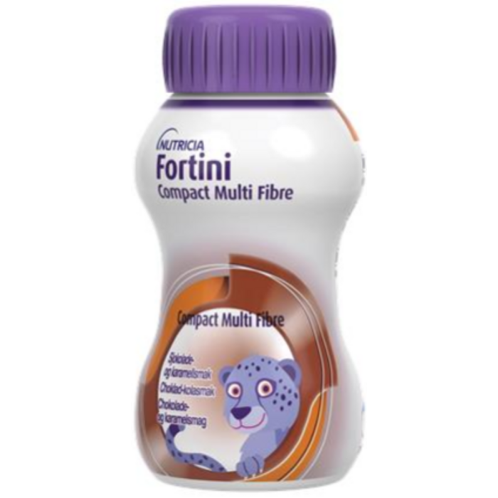 Lasten kliininen ravintovalmiste sairauteen liittyvän vajaaravitsemuksen ruokavaliohoitoon. Fortini Compact Multi Fibre 125 ml on pieni määrä juotavaa mutta sisältää runsaasti energiaa! Tuote on ravitsemuksellisesti täysipainoinen, ravintokuitua sisältävä täydennysravintovalmiste yli 1-vuotiaille lapsille. Gluteeniton ja vähälaktoosinen, Halal. Pakattu suojakaasuun. UHT-steriloitu.