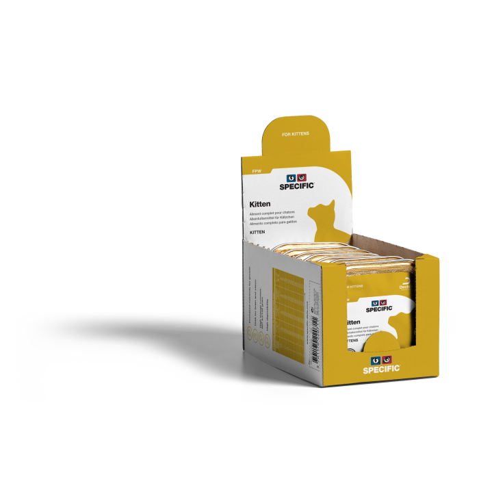 Specific FPD Kitten on ruoka kissanpennuille vieroituksesta (n. 5 - 6 viikon iästä) mahdolliseen sterilointiin/kastrointiin asti, tai muutoin 8 - 12 kuukauden ikään asti, rodusta riippuen. Tästä eteenpäin kissalle suositellaan annettavaksi Specific FXD Adult / Specific FXW Adult.