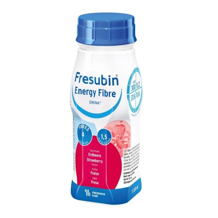 Fresubin Energy Fibre Drink 4x200 ml neste, täydennysravintovalmiste mansikka