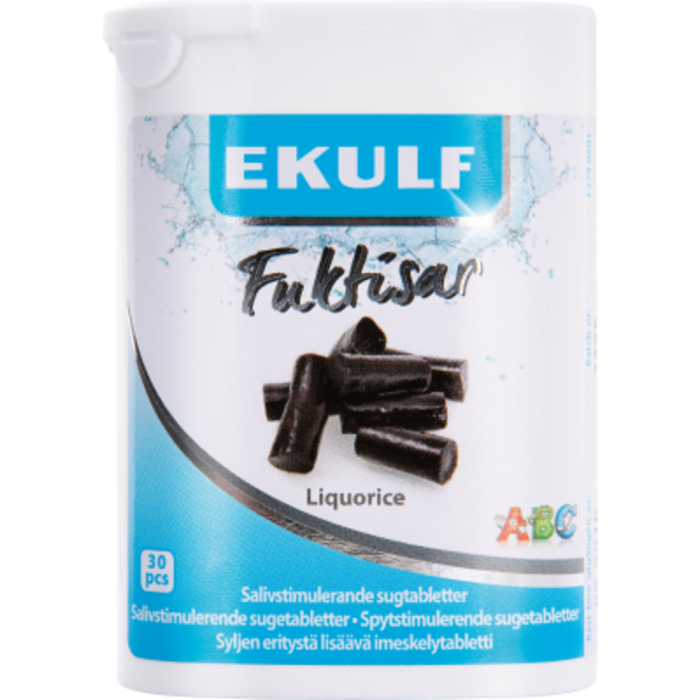 Syljen eritystä lisäävä imeskelytabletti, lakritsanmakuinen.