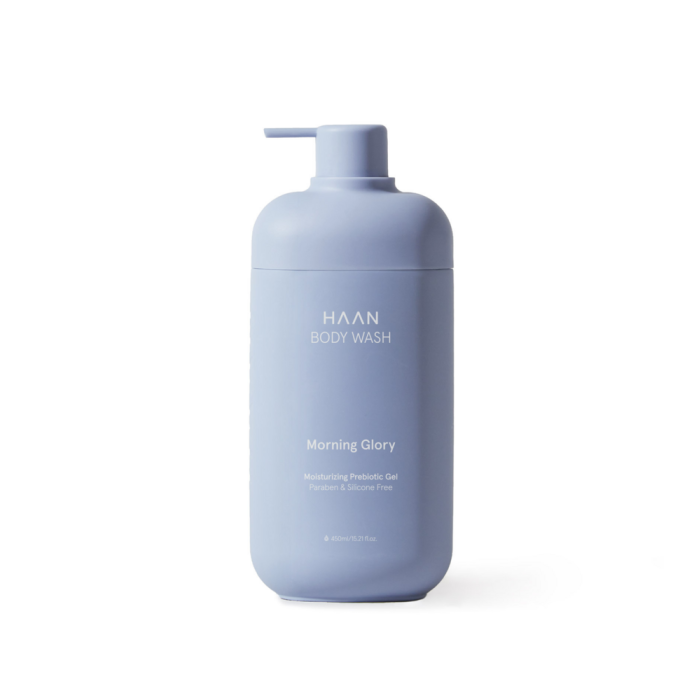 HAAN Morning Glory Body Wash on 87% luonnollisista ainesosista valmistettu suihkugeeli, joka sisältää muun muassa aloe veraa. Saippualla on pehmentävä vaikutus ja se voidaan täyttää uudelleen HAANin suihkugeelitäyttöpussilla. Morning Glory -saippuassa on kukkien, vihreän teen ja greipin tuoksu.
