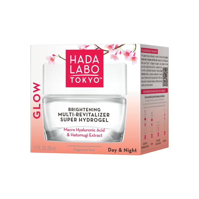 Koe uuden tason kosteutus ja hehku HADA LABO TOKYO GLOW Brightening Multi-Revitalizer Super Hydrogelin avulla – kevyt geeli, joka yhdistää seerumin tehon ja voiteen miellyttävän tunteen.