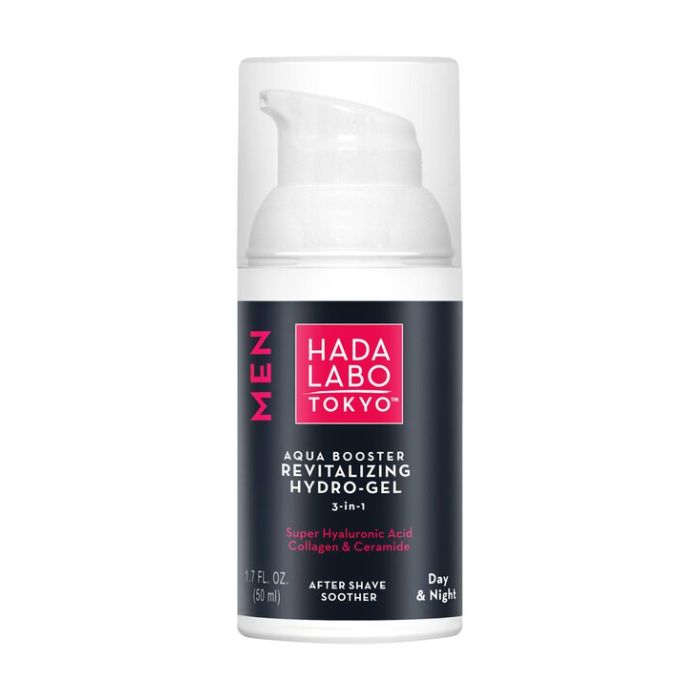 "HADA LABO TOKYO MEN Aqua Booster Revitalizing Hydrogel on kevyt ja nopeasti imeytyvä geeli, joka yhdistää voiteen, seerumin ja naamion tehon yhteen tuotteeseen.