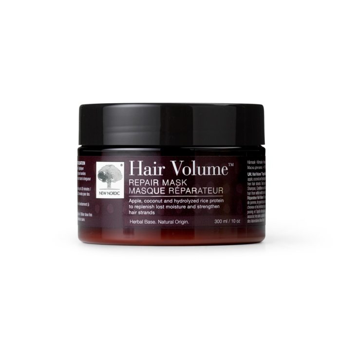 Hair Volume™ Repair Mask – ravitseva ja syvähoitava hiusnaamio, joka vahvistaa ja kosteuttaa hiuksia luonnollisten kasviöljyjen, proteiinien ja omenauutteen avulla – ilman silikoneja tai mineraaliöljyjä.