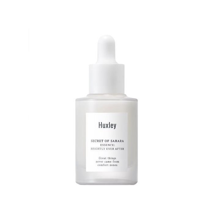 Huxley Essence; Brightly Ever After on ihoa kirkastava seerumi, joka auttaa häivyttämään pigmenttimuutoksia. Sisältää antioksidanttista kaktusviikunan siemenöljyä, rauhoittavaa bisabololia sekä ihoa kirkastavaa niasiiniamidia, jotka saavat ihon näyttämään heleältä ja terveeltä. Seerumin kevyt, maitomainen koostumus imeytyy iholle nopeasti eikä jätä kasvoille tahmaista tunnetta.