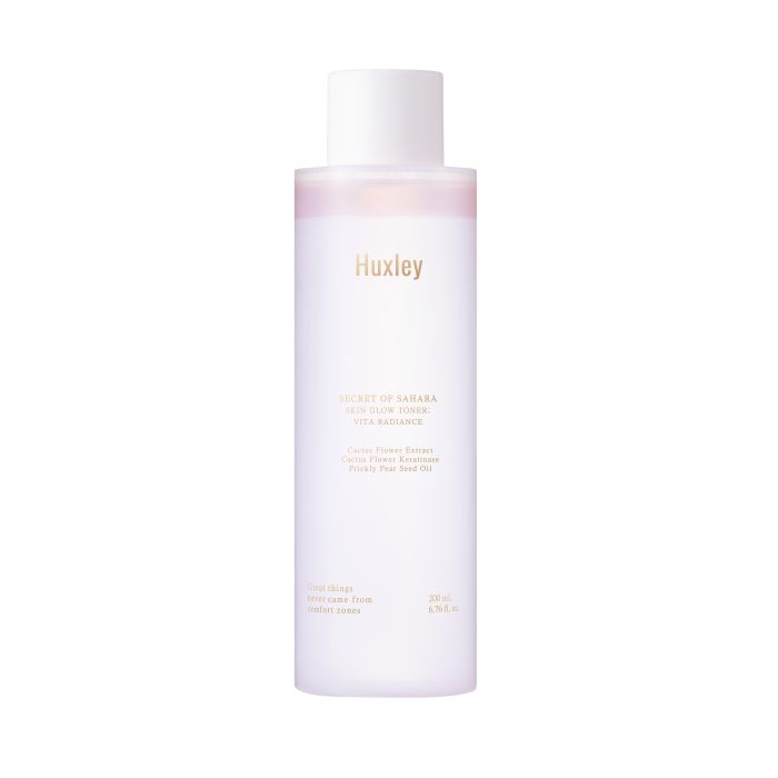 Huxley Skin Glow Toner; Vita Radiance on kosteuttava kasvovesi, joka sisältää kaktuksenkukkauutetta, kaktuksen kukasta saatavaa keratinaasia ja viikunakaktuksen siemenöljyä tehden ihosta heleän, tasaisen ja säteilevän hehkuvan. Tässä kaksifaasisessa kasvovedessä yhdistyy optimaalinen suhde vesi- ja öljykerroksia ihon tasapainoiseen ravitsemiseen. Parhaiden tulosten saavuttamiseksi ravista hyvin ennen jokaista käyttökertaa, jotta tuotteen kaksi kerrosta sekoittuvat.