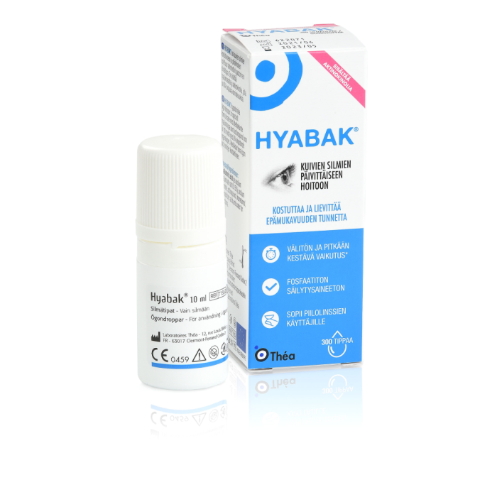 HYABAK® on hypotoninen liuos, joka on tarkoitettu käytettäväksi silmiin tai piilolinsseille. Se sisältää hyaluronihappoa (voiteleva ja kosteuttava aine) ja aktinokinolia (UV-valolta suojaava aine). Se on markkinoiden ainoa hyaluronihappoa sisältävä säilytysaineeton valmiste, jossa on lisänä ainutlaatuinen UV-suoja valoherkille silmille. HYABAK® on Théan kehittämässä ABAK® -pullossa. Pullon ansiosta liuos säilyy steriilinä ennen avaamista ja myös avaamisen jälkeen. Liuos säilyy avattuna 6 kuukautta eikä se sisällä lainkaan säilytysaineita tai fosfaatteja. Yhdestä pullosta saadaan 300 tippaa. HYABAK® on tarkoitettu lievän ja keskivaikean kuivasilmäisyyden hoitoon.