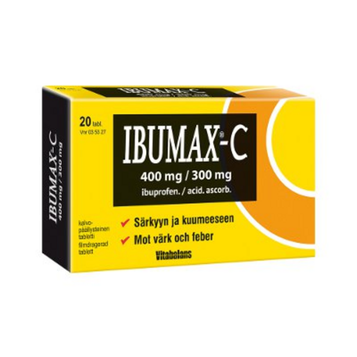 Ibumax-C sisältää ibuprofeenia, joka on tulehduskipulääke ja askorbiinihappoa (C-vitamiinia).