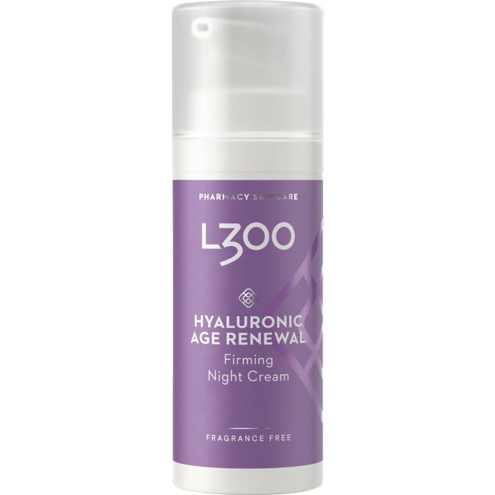 L300 Hyaluronic Age Renewal Night Cream on kiinteyttävä yövoide, joka edistää ihon uusiutumisprosessia sekä auttaa tekemään ihosta kiinteämmän ja vahvemman. Hajusteeton. Sopii normaalille ja kuivalle iholle. Dermatologisesti testattu herkällä iholla.